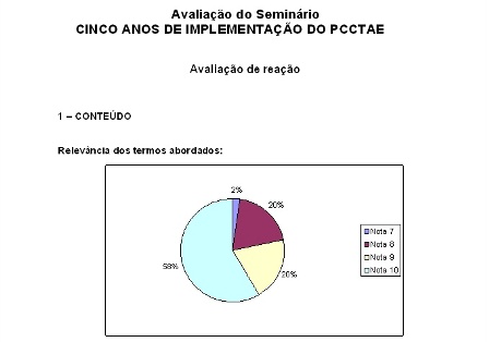 Ministério da Educação Relatório do Seminário cinco anos de implementação do PCCTAEPromovido pela CIS e ASSUFSM nos dias 04 e 05 de agosto de 2010O Seminário contou com a participação de aproximadamente 160 servidores incluindo servidores de outras Instituições Federais de Ensino dentre elas, Universidade Federal de Pernambuco, Universidade Federal do Rio Grande do Sul, Universidade Federal de Pelotas, Universidade Federal de Rio Grande, Instituto Federal Farroupilha Campus São Vicente do Sul e Colégio Agrícola de Frederico Westphalen. Representaram a FASUBRA os seguintes dirigentes, Paulo Henrique dos Santos, Rosângela Costa, Vânia Gonçalves e Fátima dos Reis. A mesa de abertura foi composta pelos seguintes representantes: Eloiz Guimarães Cristino, Loiva Izabel Chansis e Wandeley Vasconcelos, coordenadores gerais da ASSUFSM, Genice Cezar da Silva representando a Comissão Interna de Supervisão, o Magnífico Reitor Prof. Felipe Martins Müller foi representado pelo servidor técnico-administrativo Clovis Senger na composição da mesa e Paulo Henrique dos Santos representando a Federação dos Sindicatos dos Trabalhadores das Universidades Brasileiras - FASUBRA. Vale salientar que, devido ao atraso na abertura do evento, o Reitor Prof. Felipe Martins Müller em função de agenda com formandos solicitou quebra de protocolo para fazer uma saudação aos participantes do evento antes da abertura oficial. Os componentes da mesa destacam a importância do evento para debates que levem a construção de propostas que resultem em aprimoramento da carreira dos Servidores Técnico-Administrativos em Educação das Instituições Federais de Ensino. Conforme a programação, após a abertura o momento cultural contou com a apresentação do grupo Coral e Percussão da Escola Marista da Nova Santa Marta, aproximadamente 50 crianças encantaram os presentes com seus talentos. As palestras sobre os cinco anos de implementação do PCCTAE iniciaram por Fátima dos Reis que iniciou dizendo que, para fazer um balanço do PCCTAE seria necessário ter informações em nível nacional referente à capacitação dos servidores, quantas pessoas já se qualificaram, faz um resgate da época do PUCREC e lembra que na época havia a possibilidade de se fazer ascensão funcional. Fala do movimento sindical citando algumas pessoas que na época participaram das reivindicações que não evoluíram, chegando em 2001 com a discussão do PCU que também não evoluiu, chegando ao PCCTAE que na sua avaliação tem elementos muito importantes que não estavam no PCU destacando as comissões, Comissão Interna e a Comissão Nacional de Supervisão da Carreira, diz que com todos os problemas existentes no PCCTAE ainda assim avalia que acertaram em 60% e assume todos os ônus pelo que não avançou, mas também assume todos os bônus por ter participado desde o início das discussões, salienta a necessidade de aprimoramento da carreira e a luta pela ascensão funcional, lembrando que ainda assim não seriam resolvidas todas as demandas, assim como a racionalização também não resolverá o problema de todos. Fala ainda da importância do incentivo à qualificação em todos os níveis de formação, do rompimento do fator discriminatório do porque os técnicos buscarem a formação em nível de mestrado e doutorado, diz também que as limitações do PCCTAE são conhecidas e fala dos pontos que já há consenso na FASUBRA, diz que a necessidade não é de outra carreira e sim de tabela, diz ainda que não terá problema se tiver que avaliar e admitir equívocos. Na sequência, Paulo Henrique faz um histórico da situação dos servidores públicos em geral e todas as demais legislações até chegar ao PCCTAE. Faz um resgate de todos os processos de negociação dizendo que a carreira da FASUBRA não é tabela e sim um plano de desenvolvimento para os servidores vinculado ao desenvolvimento institucional destaca a questão da democratização das relações nas Universidades e também o papel das Comissões Internas de Supervisão. A palestrante seguinte, Vânia Gonçalves diz que foram chamadas todas as forças políticas da FASUBRA para fazerem um balanço dos cinco anos de implementação do PCCTAE, diz que na época seu grupo político foi contra a aprovação, e posteriormente concluíram que os problemas eram ainda maiores do que imaginavam e um deles, na sua avaliação é o VBC, mas também diz que não devem ser desconsiderados os avanços alcançados no PCCTAE. Diz que há uma proposta que está parada na mesa do governo e muitos dos problemas são de ordem política e não jurídica, depende muito mais de vontade política para resolver todas essas questões. Destaca também a situação das reuniões da Comissão Nacional de Supervisão, a falta de disposição dos representantes do governo na CNS. Aponta alguns itens fundamentais para o aprimoramento da carreira, fala da retirada pelo governo do Step constante, diz que o PCCTAE tem avanços em relação ao PUCRCE, mas também ainda muitos problemas, diz que na época foi contra a aprovação por entender que podiam avançar mais na carreira e desafia os presentes para uma retirada de encaminhamentos que atenda toda a demanda sobre a carreira.Rosângela inicia sua falação dizendo que não faz parte do grupo que estuda a carreira, mas que nos debates da CSD sempre ficou claro que a carreira conquistada não era a carreira que queriam e que defendem e que embora poucos sempre se posicionaram de maneira clara sobre os princípios da carreira e sempre defenderam a indissociabilidade entre ativos e aposentados, acha fundamental que se faça todos os debates necessários sobre a carreira que queremos sem fragmentar a categoria. Na sua avaliação, o grande problema foi a quebra da linearidade e que em 2007 queriam rediscutir, rever os elementos na época colados e que independente de com quem se esta negociando a categoria tem que estar u